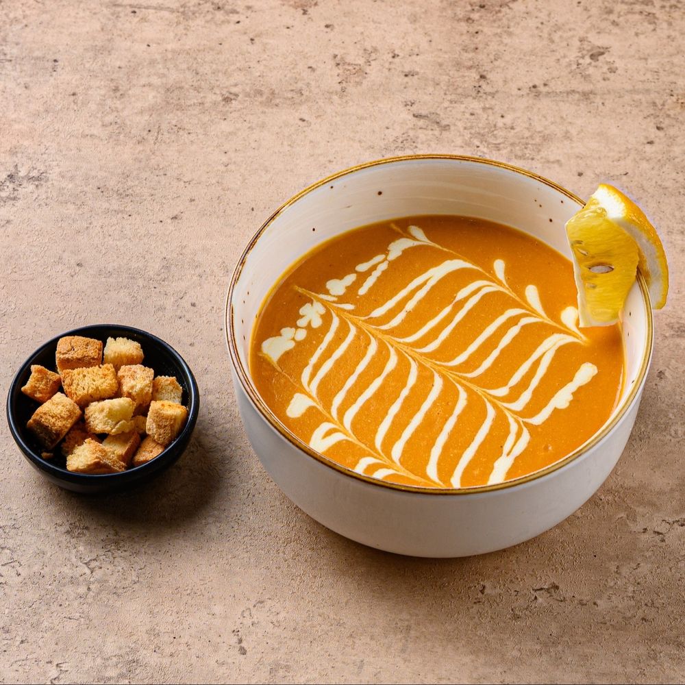 Нежный, густой и согревающий суп пюре с мягкой текстурой и пряными нотами. Состав: Чечевица, морковь, лук, специи, растительное масло.