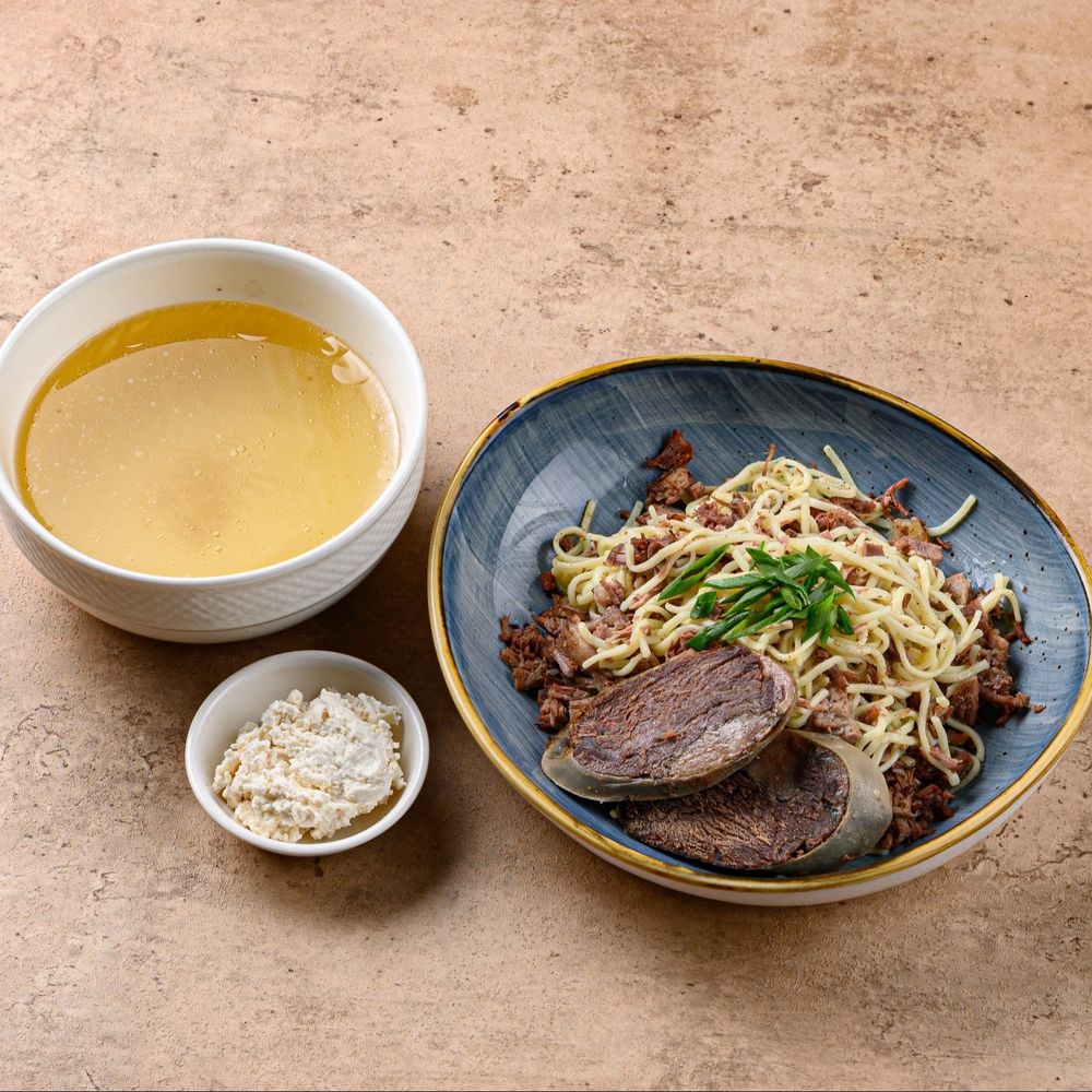 Тонко нарезанная домашняя лапша, приготовленная до идеальной мягкости, пропитывается насыщенным ароматным бульоном. Щедрые ломтики казы придают блюду глубокий мясной вкус и выразительные копчёные нотки. Нарын получается сытным, согревающим и по-настоящему аутентичным. Состав: Домашняя лапша, казы, насыщенный бульон, репчатый лук, специи.